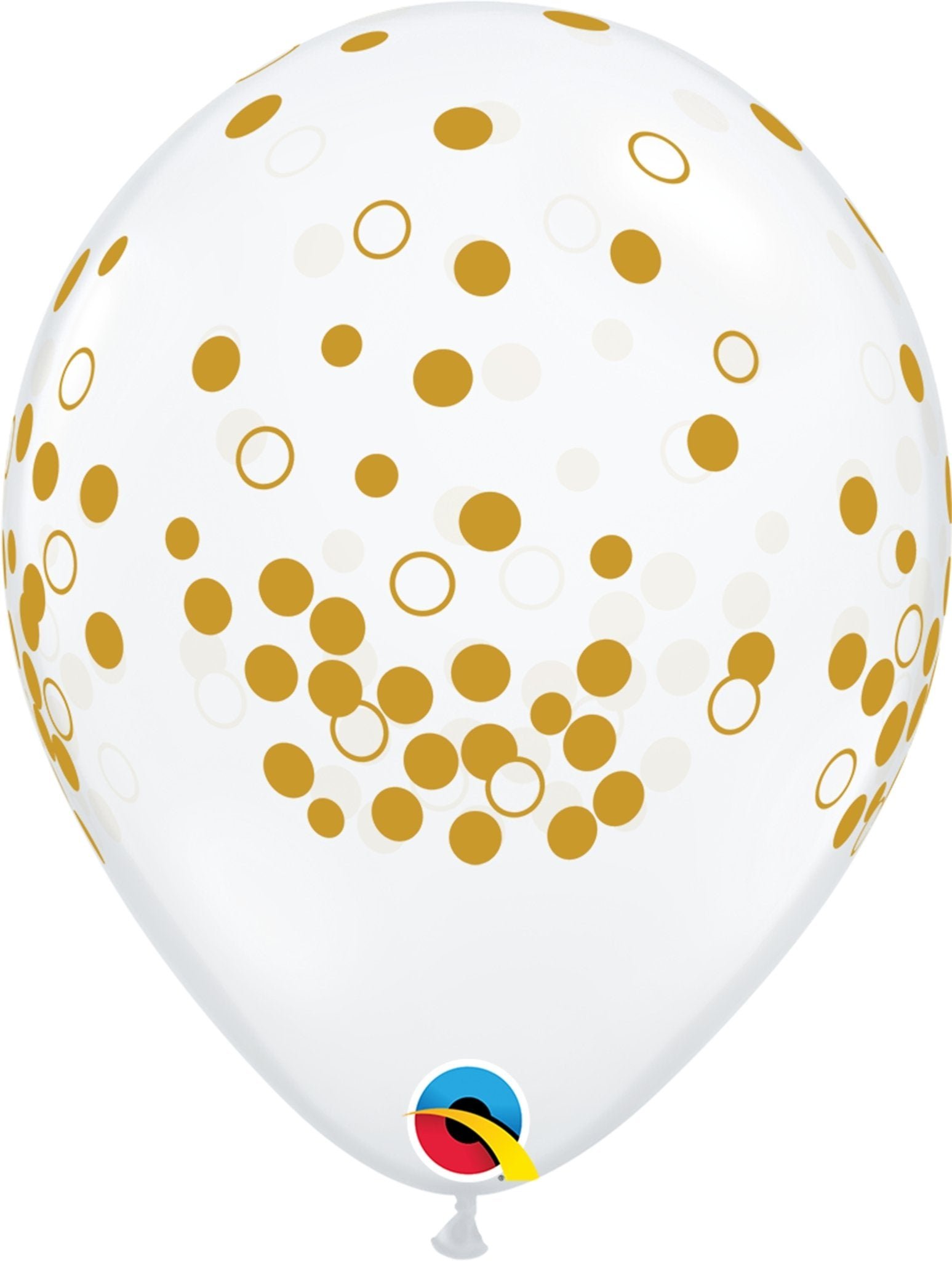 Time to party! These clear latex balloons are printed with gold dots and circles that look like confetti. Get the gorgeous look, without the confetti mess!