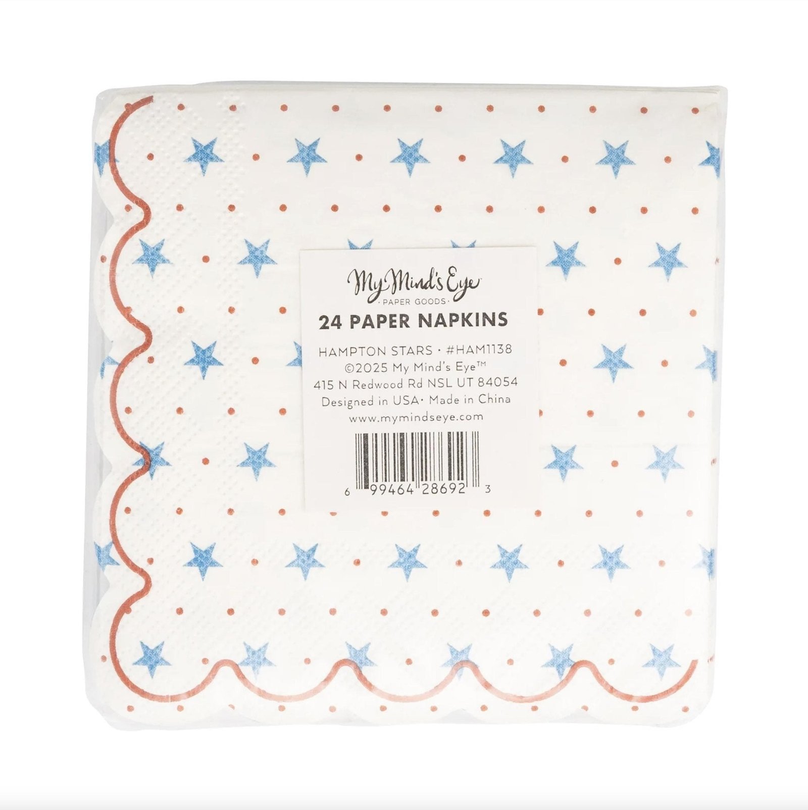 Add a playful pop of patriotic charm to your party with these star-studded cocktail napkins! Featuring blue stars, red dots, and a scalloped red border, they’re perfect for 4th of July, birthday parties, summer BBQs, and poolside celebrations.