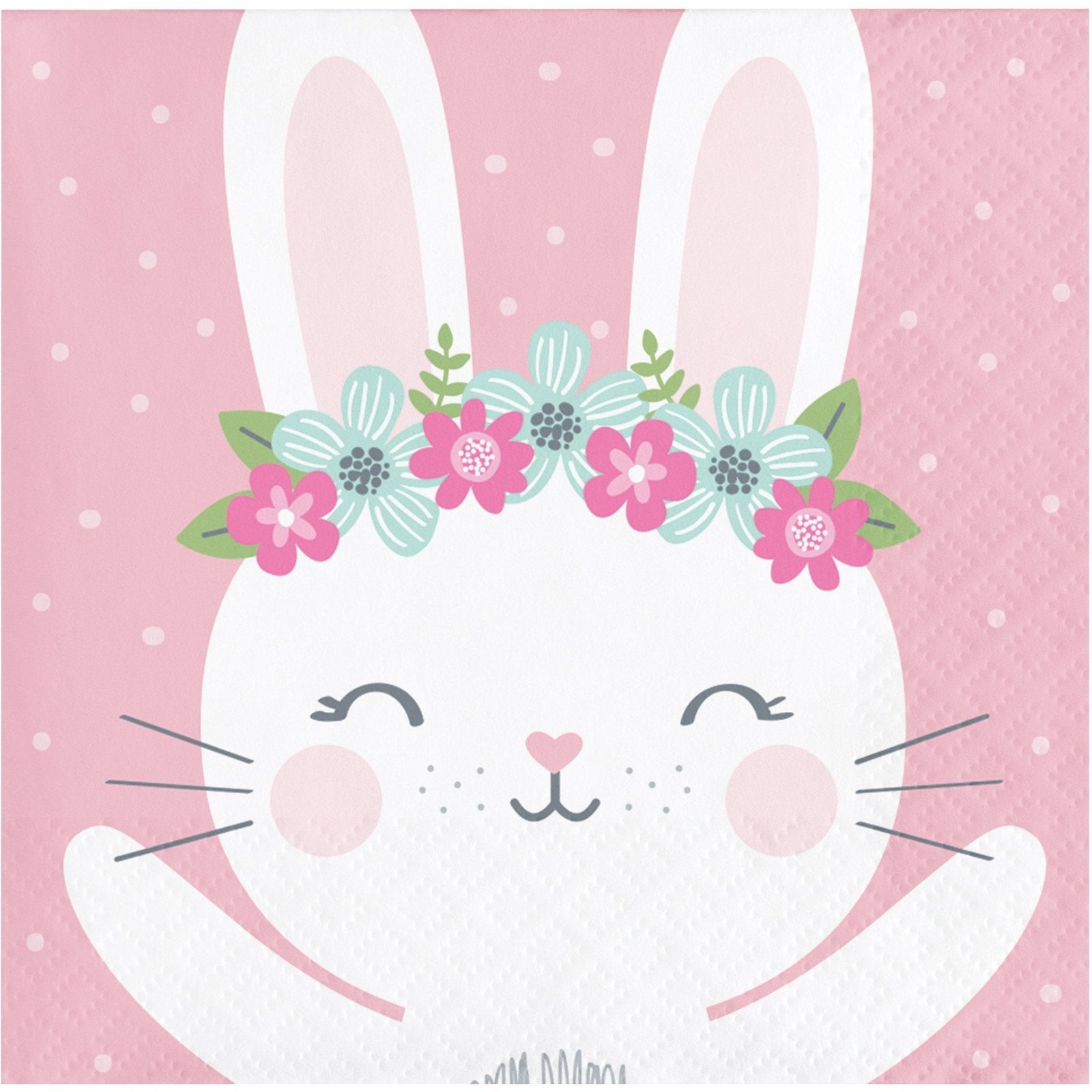 The most adorable white bunny graces these pink floral bunny party napkins! Use them to serve up sweet treats, appetizers and drinks to guests at your bunny baby shower, bunny birthday party, or spring get-together!