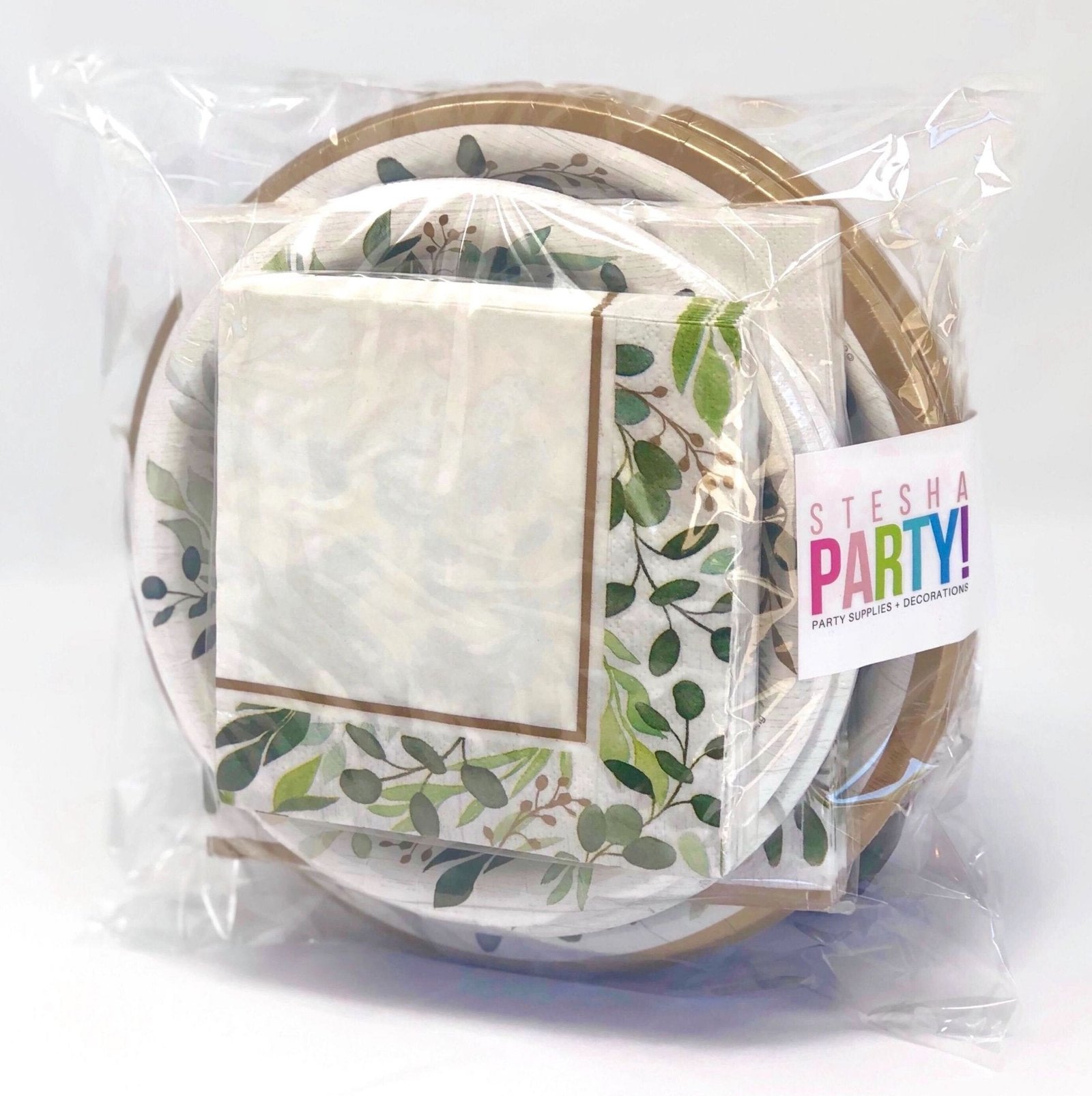 These beautiful eucalyptus plates and napkins are perfect for your botanical wedding or bridal shower!