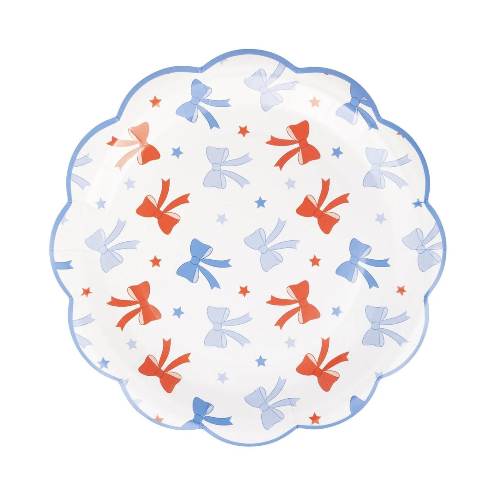 Add a festive pop to your patriotic party with these charming coquette bow dinner plates! Featuring scalloped edges and a red, white, and blue color scheme, they’re perfect for 4th of July celebrations, summer birthdays, baby showers, and family BBQs.