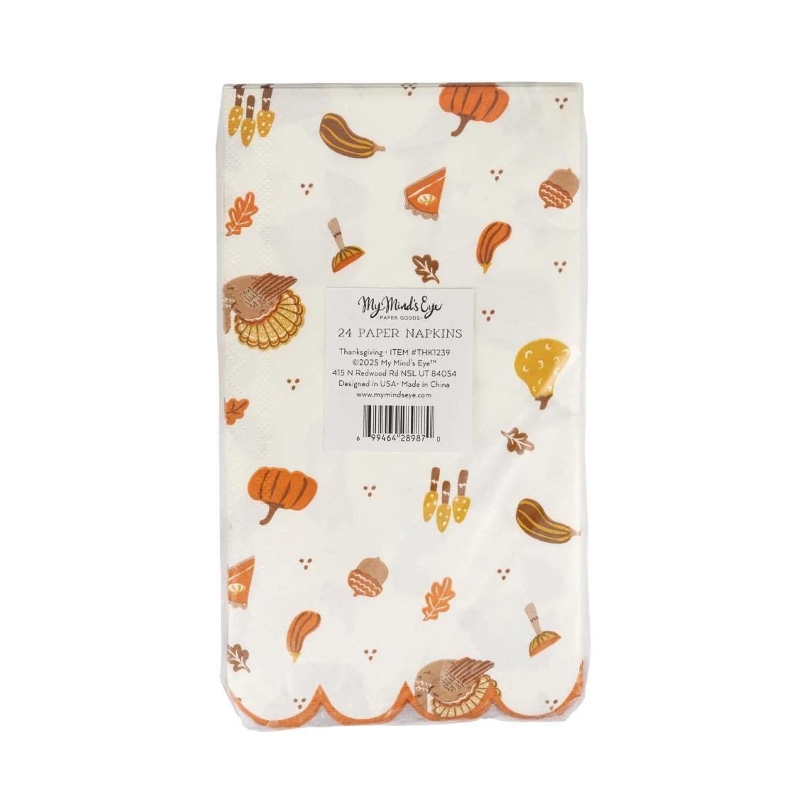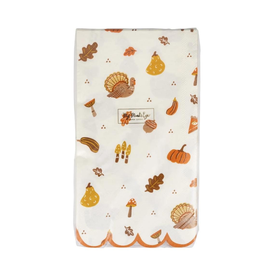 Set a warm and festive tone for your Thanksgiving meal with these adorable paper napkins! Each features a charming fall pattern of turkeys, pumpkins, leaves, gourds, mushrooms and acorns in cozy autumn colors. Perfectly sized for dinner or dessert, these sturdy napkins add a seasonal touch to your Thanksgiving or Friendsgiving table and pair beautifully with coordinating turkey plates and pie plates.