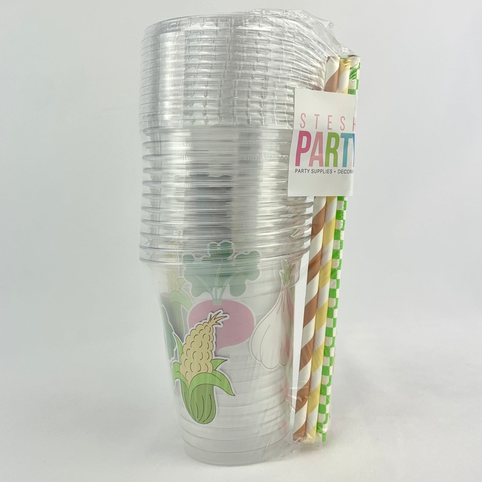 Get ready to party with a veggie twist! This set of 12 plastic drink cups is as fresh and fun as it gets, featuring adorable veggie-themed decals like a tomato, pea pod, corn, onion, broccoli, and beet. Perfect for serving cold drinks, each cup comes with a secure lid and a matching paper straw to keep things neat and stylish. Whether you’re celebrating a veggie-themed birthday, a farmer’s market bash, or throwing a party for your favorite chef or baker, these disposable plastic cups bring a healthy dose of fun to every sip!