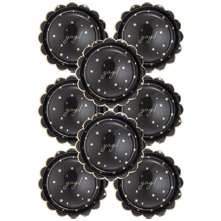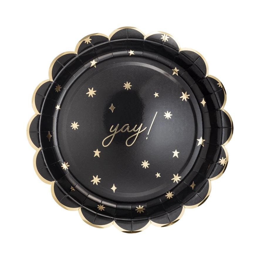 “Yay!” Black & Gold Paper Dinner Plates 8ct